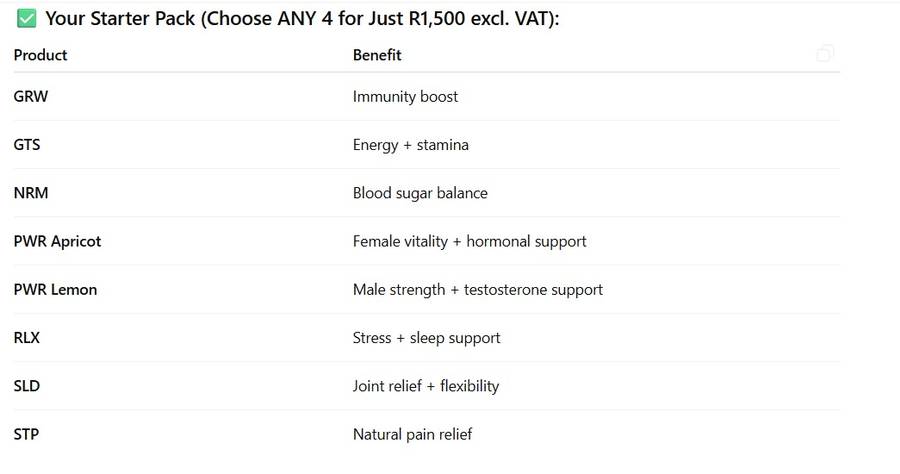 With just 4 essential products (only R375 each), anyone can become part of a system that: